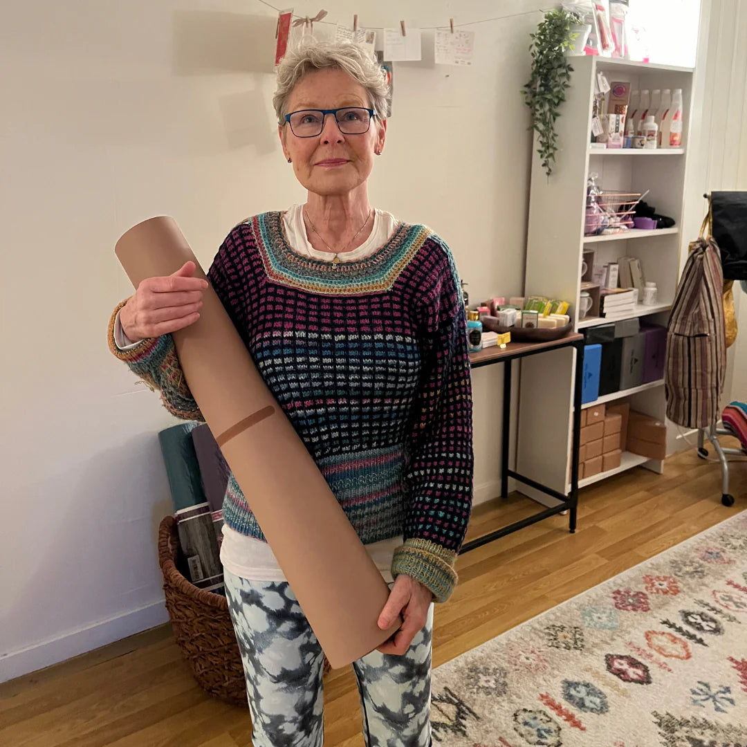Rulla alltid ihop yogamattan med den färgade sidan utåt.